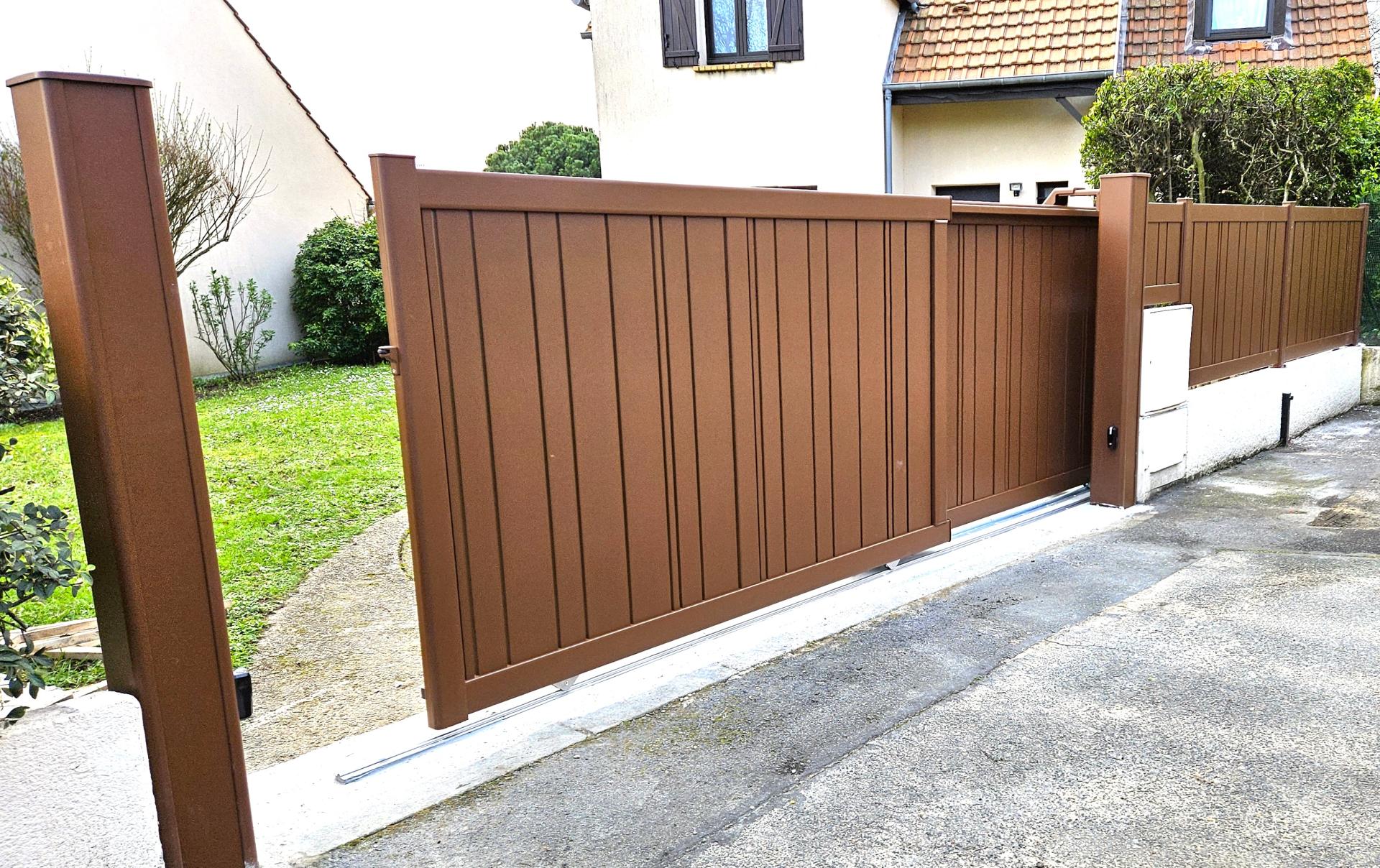 Le portail coulissant télescopique est composé de deux vantaux qui viennent coulisser sur 2 rails au sol. Le premier vantail entrainant donc le second afin de se loger tous les deux à l'intérieur de la propriété, à la parallèle de votre devanture.